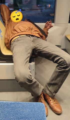 Jak pisze nasza Czytelniczka Kasia pasażerowie obudzili śpiącego mężczyznę, ten jednak jedynie pomruczał i dalej poszedł spać.
