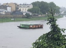 Wczoraj koło godz. 15:00 policjanci z komisariatu wodnego patrolując Wisłę zauważyli, że po wzburzonych nurtach rzeki płynie bezwładnie olbrzymia jednostka, złożona z 4 tramwajów wodnych złączonych ze sobą