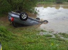 W poważne tarapaty wpadła wczoraj kobieta jadąca w Ołpinach, w strugach deszczu, która straciła panowanie nad audi i zjechała z drogi, prosto do sąsiadującego z nią stawu. Sytuacja
