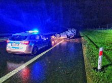 Samochód dachował w rozlewisku. Jerzy Sienkiewicz