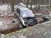 Na granicy powiatów tarnowskiego i dąbrowskiego, samochód osobowy wypadł z drogi i wpadł do rowu.