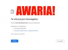 Po godzinie 21 nastąpiła ogromna awaria Facebooka. Nie działa cały serwis, ale usługa messenger na telefonach komórkowych jest dostępna. Istnieją jednak problemy z wyświetlaniem zdjęć.