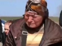 Starsza kobieta wyszła z flagą ZSRR witać rosyjskich żołnierzy. Niestety są jeszcze tacy ludzie na terytorium Ukrainy. Nie mają dostępu do Internetu i zapewne nie wiedzą jakie zbrodnie dokonują Rosjanie na Ukrainie.