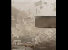 Przerażając film pokazujący siłę żywiołu, jaki przechodzi obecnie przez Kraków. Z dachu dyskontu na os. Złocień zostały strzępy, które wiatr ciskał między zaparkowane samochody.
