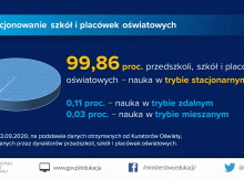 „Funkcjonowanie szkół i placówek oświatowych – stan na 3 września. W 99,86 proc. praca w trybie stacjonarnym.” – poinformowało właśnie Ministerstwo Edukacji Narodowej.