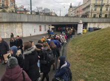 W przejściu podziemnym u zbiegu ulic Basztowej i Lubicz stoi ogromna kolejka osób pragnących nabyć pączki w Starej Pączkarni